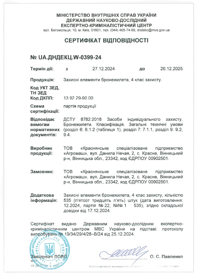 Обов’язково: відповідність ДСТУ 8782:2018, 8788:2018 + протокол випробувань. Без цього бронежилет – ризик!